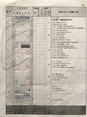 In March every school releases a school schedule. Usually they don’t give this to the English teacher because you don’t speak Korean. This schedule tells you when the open classes are going to be, holiday, vacations, when the kids are going on trips, etc. The schedule will look something like this but maybe not exactly: