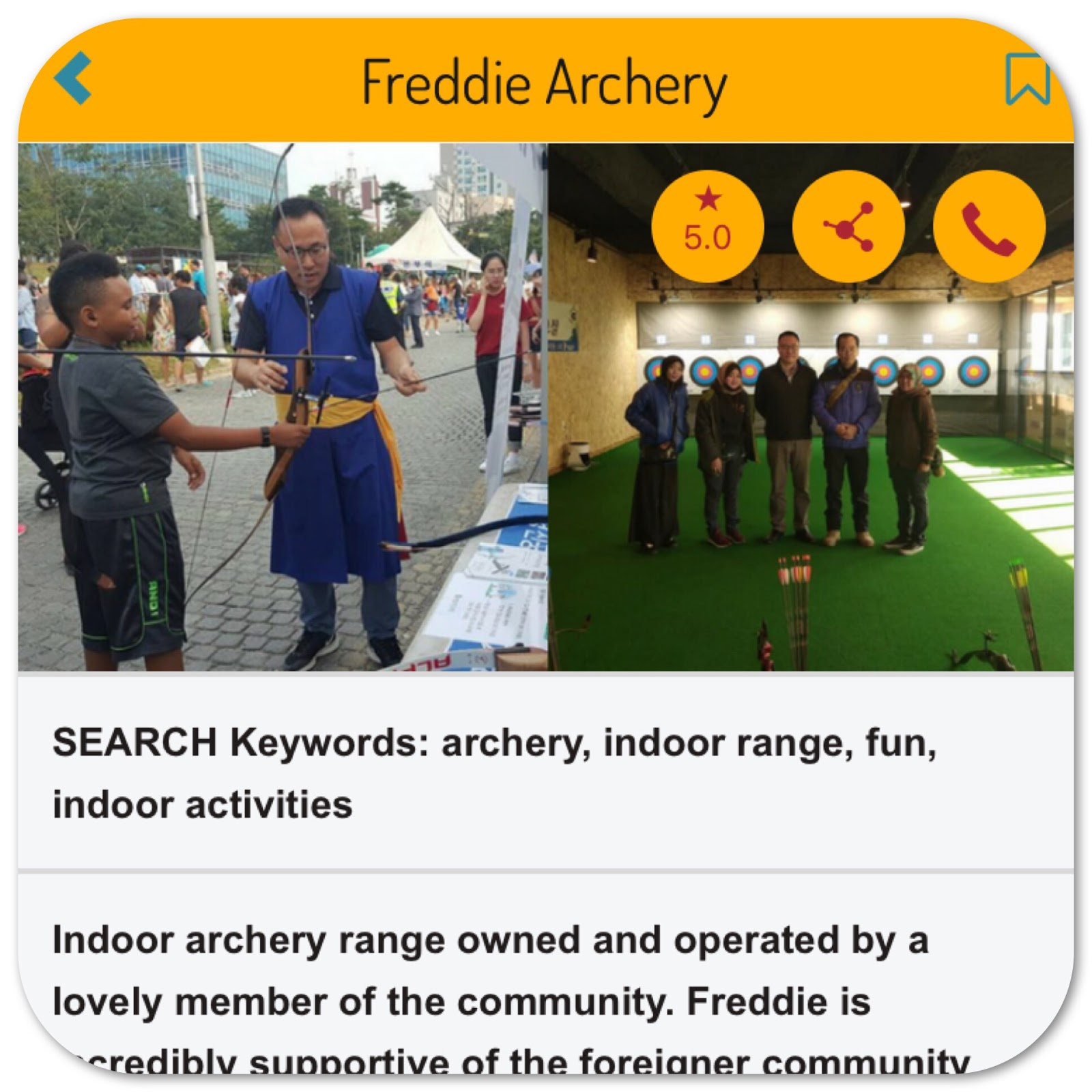 S.O.S. PICK: We go to Freddie’s archery in Seojeongri for a variety of reasons: 1) It’s near our house; 2) Freddie is an awesome part of the community and very involved with the foreigner community; and 3) Freddie speaks English and will make you feel comfortable. If you become instantly addicted to the sport, he also has ALL the hookups for gear and classes.