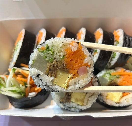 - Rice quality: Kimbap should be tightly rolled with seasoned, sticky rice
