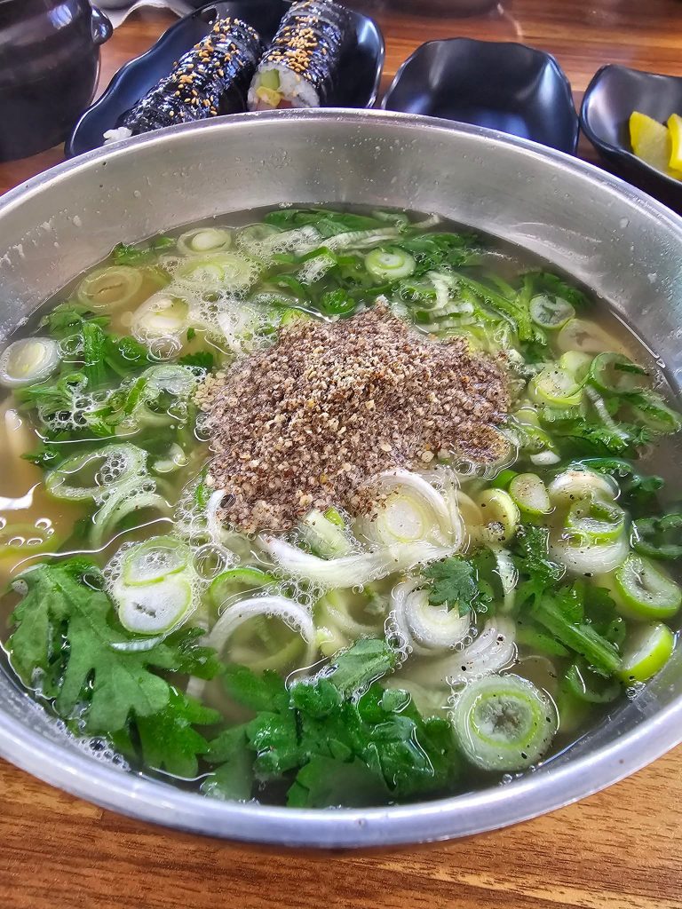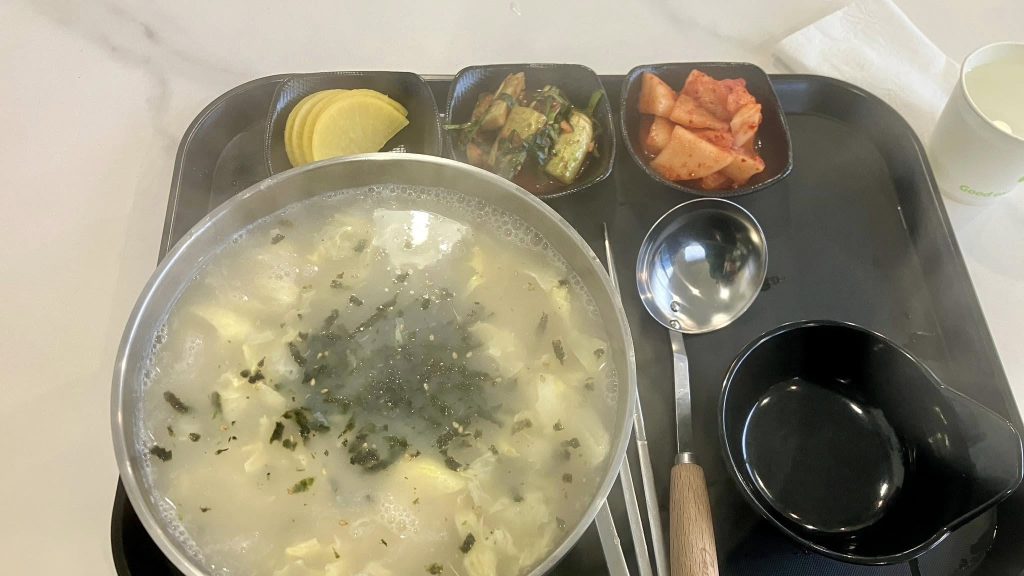 | 만두국 (Manduguk) | Dumpling soup | Light beef or anchovy broth with soft dumplings (mandu), often includes egg and green onions. Ask for beef broth only: 멸치국물 아니고 소고기 국물이에요? (“Is it beef broth, not anchovy?”) |
