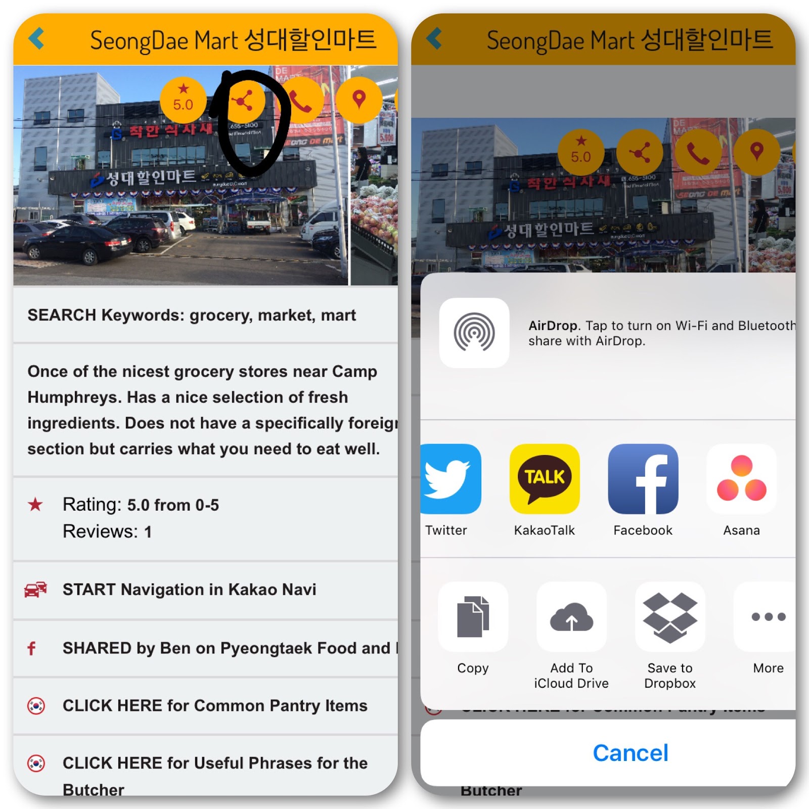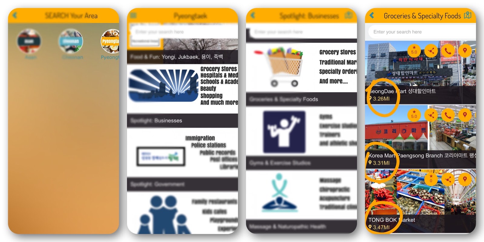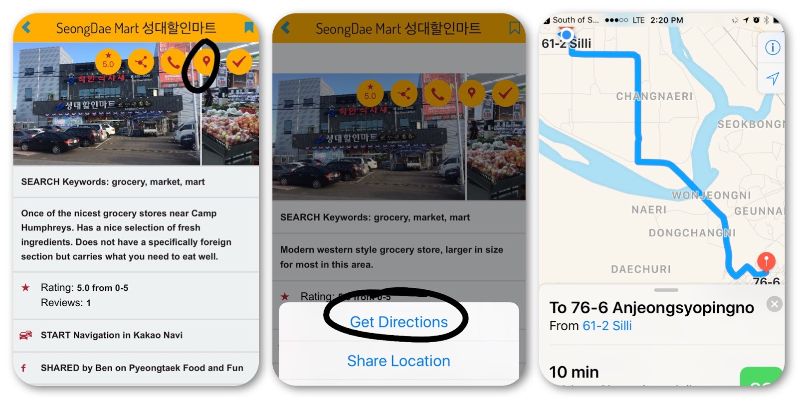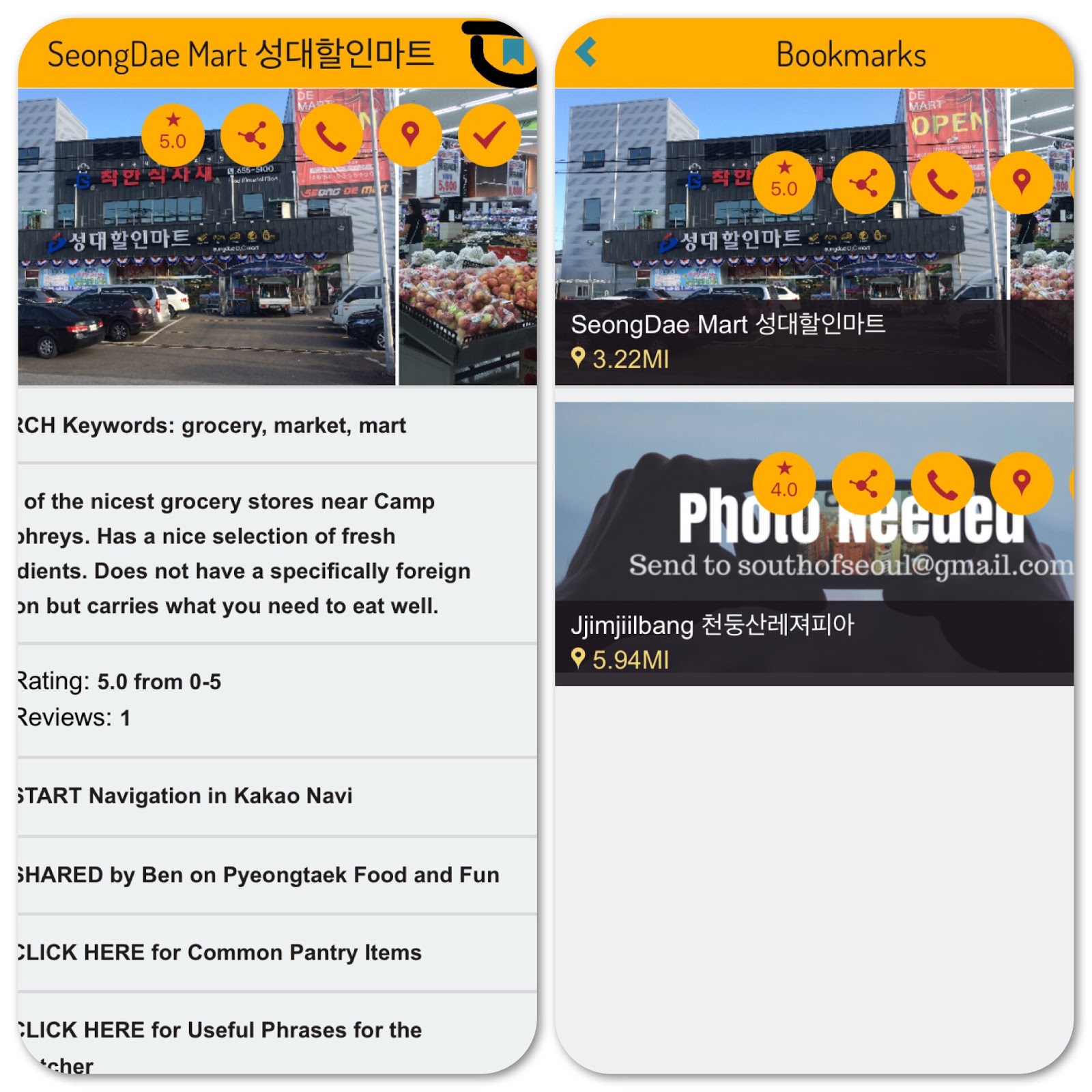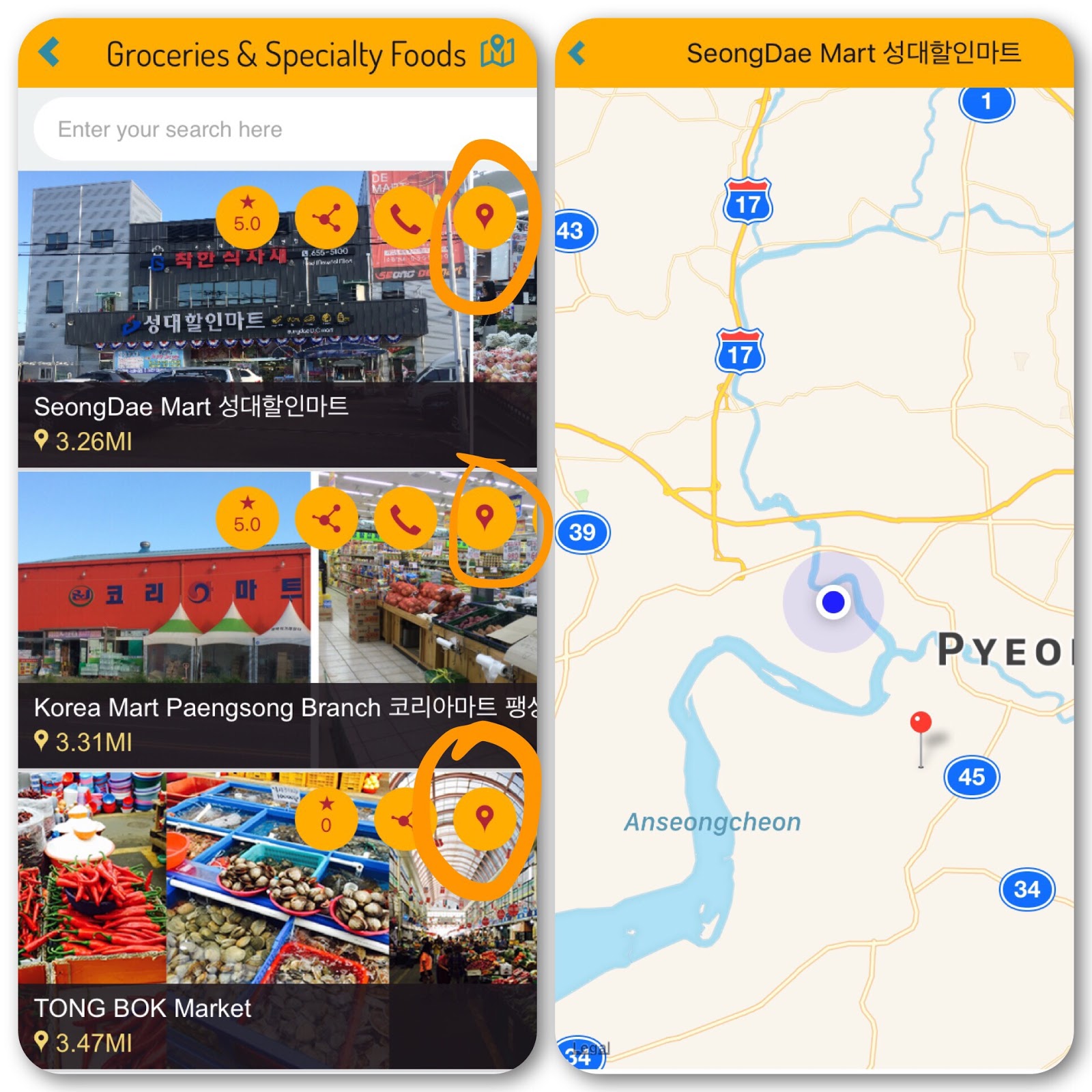 The first thing you should notice when you open the Spotlight: Businesses: Groceries is that listings are sorted by distance from where you are standing at the moment. This is incredibly helpful when you need things right away. We know that many of our users are new to Korea. You don’t know where you are or where other neighborhoods are in relation to you. Seeing the distance will help you learn where things are at. You will also notice that we have taken our many users from the USA into consideration and listed things in miles for your comfort.
