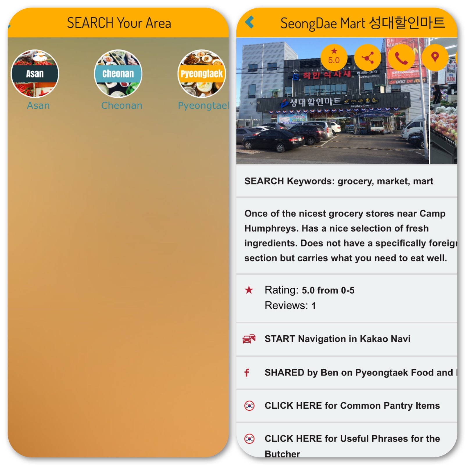 To get started let’s enter the Pyeongtaek Area Directory, select Spotlight: Businesses and Groceries & Specialty Foods. The listing we are looking at today is a popular store located near Camp Humphreys.