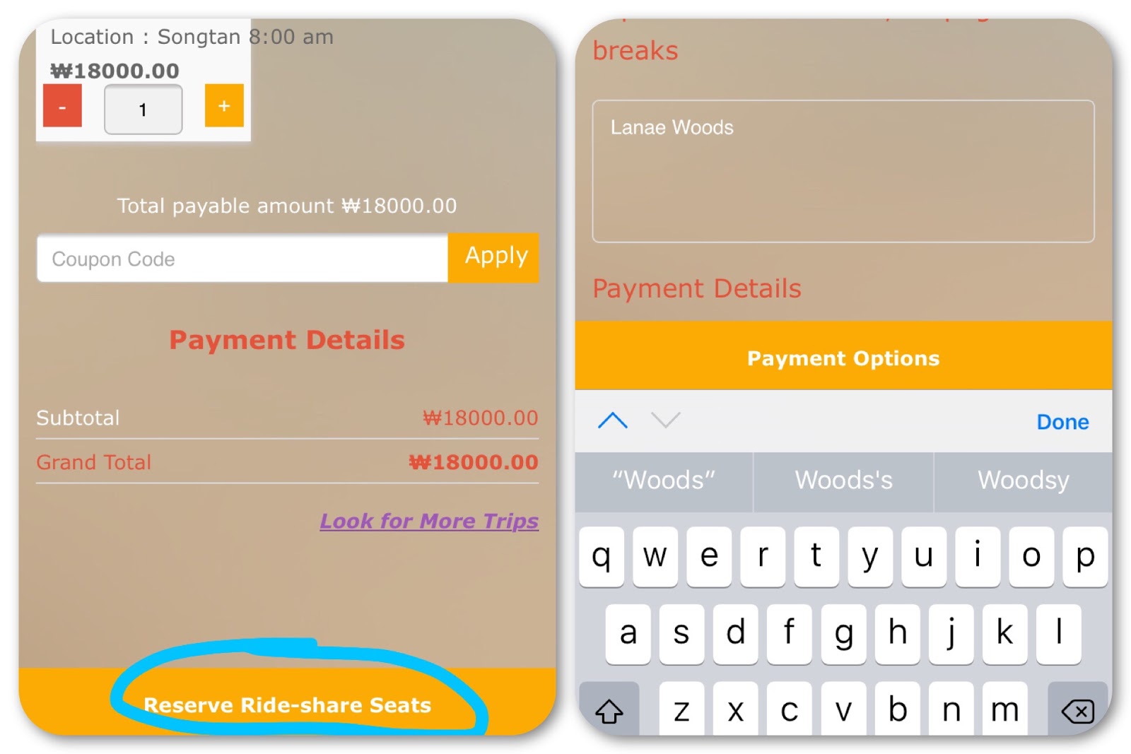 Although we don’t have integrated payments (because it adds a great deal of cost to each seat and we aren’t really selling anything, just collecting ride-share fees so it’s not really an option to do it any other way.) the system we use requires that we have address fields. However, you can just provide your email and phone number and then write N/A in the other fields. We don’t actually need to know where you live, just need to have the fields for the system to run smoothly.