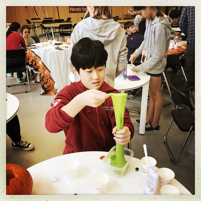 On the second day we all got up early, showered, and at 8:15 a.m. headed off to Camp Humphreys where we met with parents who had created a US style Halloween party complete with pumpkin carving, face painting, slime making, playing games like “Red Rover”, and eating too much sugar. This was like the icing on the cake. It was heartwarming to bring the Korean students and center staff on base to see into the culture that many of us at South of Seoul come from. It felt like bringing our Korean friends home for the holidays. Thank you for the warmth you brought to the party.